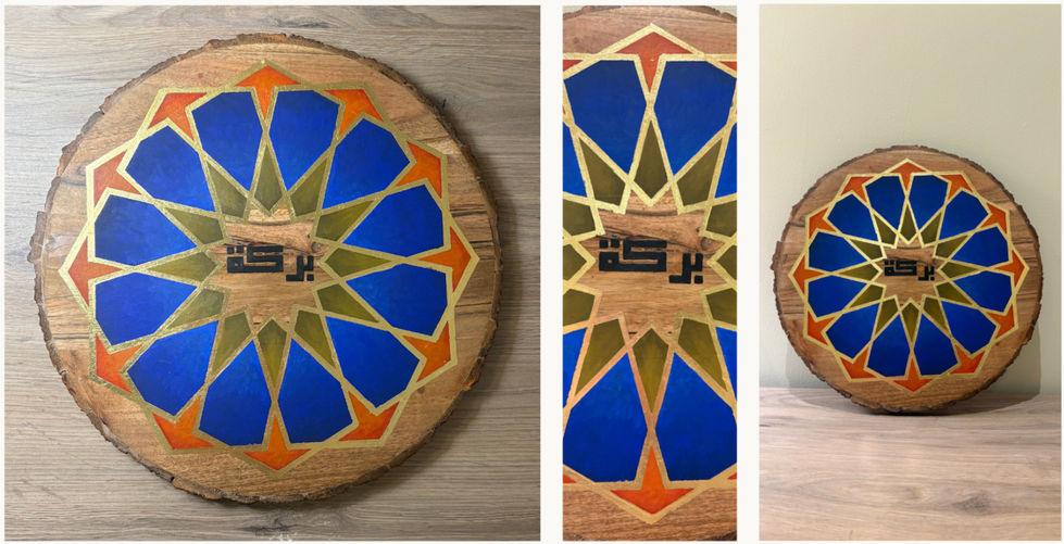 الخامات: خشب طبيعي، ألوان أكريليك، ورق ذهب